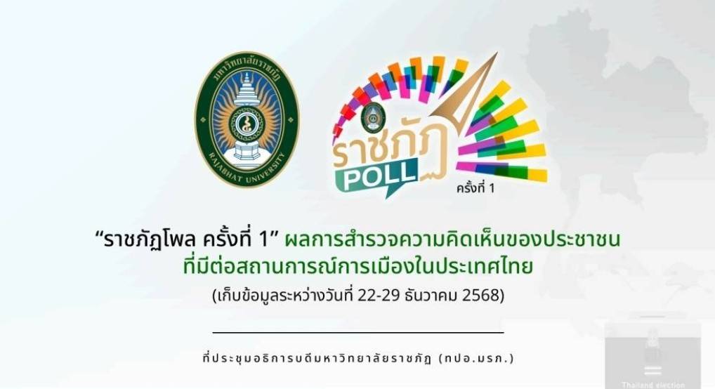 ที่ประชุมอธิการบดีมหาวิทยาลัยราชภัฏ (ทปอ.มรภ.) เปิดเผยผลสำรวจความคิดเห็นของประชาชนทั่วประเทศภายใต้ชื่อ “ราชภัฏโพล ครั้งที่ 1” เรื่อง “ผลการสำรวจความคิดเห็นของประชาชนที่มีต่อสถานการณ์การเมืองในประเทศไทย” โดยเก็บข้อมูลจากกลุ่มตัวอย่างจำนวน 11,900 คน ทั่วทุกภูมิภาคของประเทศ ระหว่างวันที่ 22-29 ธันวาคม 2568 ที่ผ่านมา ซึ่งพบประเด็นที่น่าสนใจดังนี้