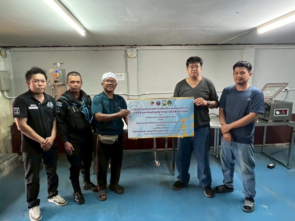 เมื่อวันที่ 22 มกราคม 2569 สำนักงานการวิจัยแห่งชาติ(วช.) กระทรวงการอุดมศึกษา วิทยาศาสตร์ วิจัยและนวัตกรรม (อว.) ร่วมกับ กองอำนวยการรักษาความมั่นคงภายในราชอาณาจักร (กอ.รมน.) ศูนย์ประสานการปฏิบัติที่ 5 (ศปป.5) โดย ดร.วิภารัตน์ ดีอ่อง ผู้อำนวยการสำนักงานการวิจัยแห่งชาติ มอบหมายให้ นางสาวภาวณี คำชาลี ผู้อำนวยการกองส่งเสริมและและสนับสนุนการวิจัยและนวัตกรรม เป็นประธานร่วมกับพันเอกกฤศณัฏฐ์ จันทร รองผู้บัญชาการมณฑลทหารบกที่ 44 ในพิธีส่งมอบนวัตกรรมในโครงการ “การพัฒนาการแปรรูปทรัพยากรพื้นถิ่นด้วยนวัตกรรมและองค์ความรู้ เพื่อเพิ่มมูลค่า และยกระดับเศรษฐกิจชุมชน: กรณีศึกษากลุ่มวิสาหกิจ แปรรูปเนื้อแพะและแปรรูปสัตว์น้ำ” และผู้ทรงคุณวุฒิ วช. ร่วมลงพื้นที่ โดยมีนายมะยาเซ็ง เจะเด็ง นายกเทศมนตรีตำบลมายอ ให้การต้อนรับ ณ ที่ทำการกลุ่มสมาคมปลูกรักสร้างสุข ตำบลมายอ อำเภอมายอ จังหวัดปัตตานี