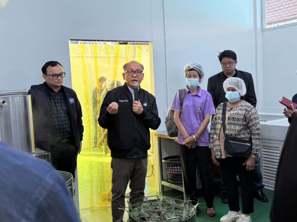 นำโดย: ผศ.ดร.วสันต์ ปินะเต (ผู้อำนวยการสถาบันฯ) ได้จัดกิจกรรมอบรมการแปรรูปสินค้าเกษตรและสมุนไพรพื้นถิ่นเชิงพาณิชย์ ให้แก่แกนนำเครือข่ายผู้ปลูกและแปรรูปสมุนไพรในจังหวัดมหาสารคามด้วยนวัตกรรมเครื่องจักรแบบยืดหยุ่น เพื่อรองรับการบริการของศูนย์แปรรูปฯ ภายใต้สถาบันวิจัยและพัฒนา สำหรับแนวทางส่งเสริมเศรษฐกิจฐานรากในจังหวัดมหาสารคามต่อไป กิจกรรมดังกล่าว ได้รับทุนสนับสนุนจากหน่วยบริหารและจัดการทุนด้านการพัฒนาระดับพื้นที่ (บพท.) ประจำปีงบประมาณ 2568 ภายใต้กรอบการวิจัย “การออกแบบและพัฒนากลไกการถ่ายทอดและบริการเทคโนโลยีสู่ชุมชน” ภายใต้เป้าหมายสำคัญ เรื่อง “ครัวเรือนในชนบทและผูประกอบการในพื้นที่ทีรายได้เพิ่มขึ้นด้วยเทคโนดลยีที่เหมาะสม (12,000 ครัวเรือนในชนบท มีรายได้สุทธิเพิ่มขึ้น 5,000 บาทต่อเดือน ภายใน 2 ปี)”