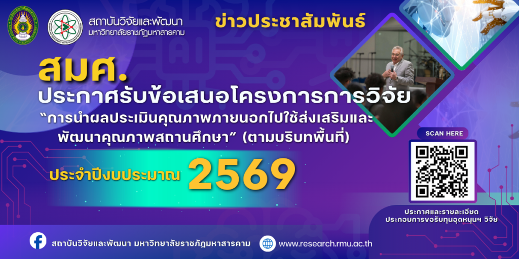 ขอเชิญชวนคณาจารย์และนักวิจัยที่สนใจ ส่งข้อเสนอโครงการวิจัย เพื่อขอรับการให้ทุนอุดหนุนการวิจัย “การนำผลประเมินคุณภาพภายนอกไปใช้เพื่อส่งเสริมและพัฒนาคุณภาพการศึกษา”(ตามบริบทพื้นที่) เพื่อส่งเสริมให้นักวิจัยพัฒนาองค์ความรู้ นวัตกรรมหรือรูปแบบการพัฒนา ที่สามารถนำผลการประเมินไปใช้แก้ไขปัญหาและยกระดับคุณภาพสถานศึกษาได้อย่างตรงจุด โดยมุ่งหวังให้เกิดผลลัพธ์เชิงประจักษ์ที่ส่งผลต่อการยกระดับคุณภาพการศึกษาทั้งระดับพื้นที่ระดับประเทศ